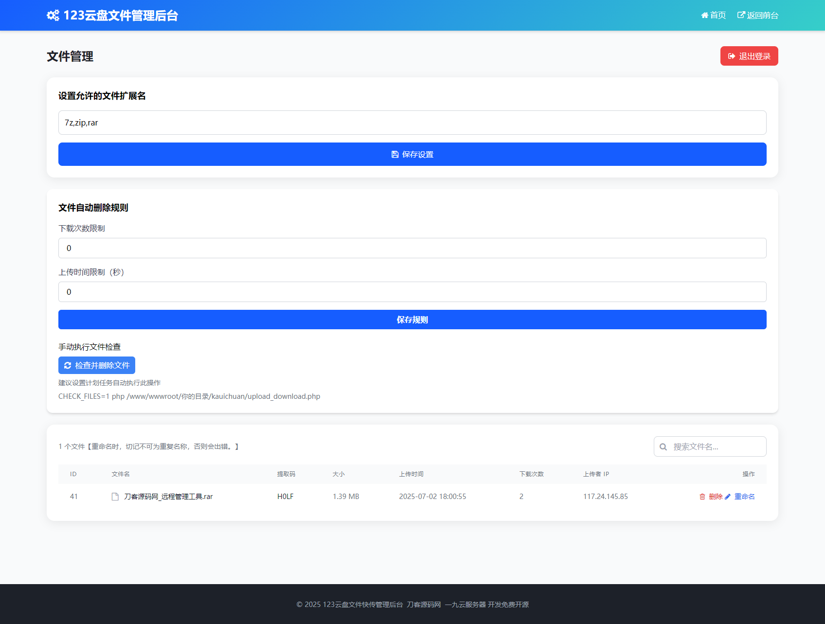 最新临时文件快传系统源码 轻量化 带后台 首发admin4个月前更新关注私信084最新临时文件快传系统源码 轻量化 带后台 首发此内容为付费阅读,请付费后查看¥3黄金会员¥2钻石会员¥1立即购买您当前未登录!建议登陆后购买,可保存购买订单付费阅读已售 5 简介: 最新临时文件快传系统源码 轻量化 带后台 首发 轻松上传文件并生成提取码分享给他人,无需注册,方便快捷。 鸣谢投稿人:一九云服务器 图片: 课程下载: 此处内容已隐藏,请付费后查看 © 版权声明文章版权归作者所有,未经允许请勿转载。THE END未分类 喜欢就支持一下吧点赞4 分享QQ空间微博QQ好友海报分享复制链接收藏