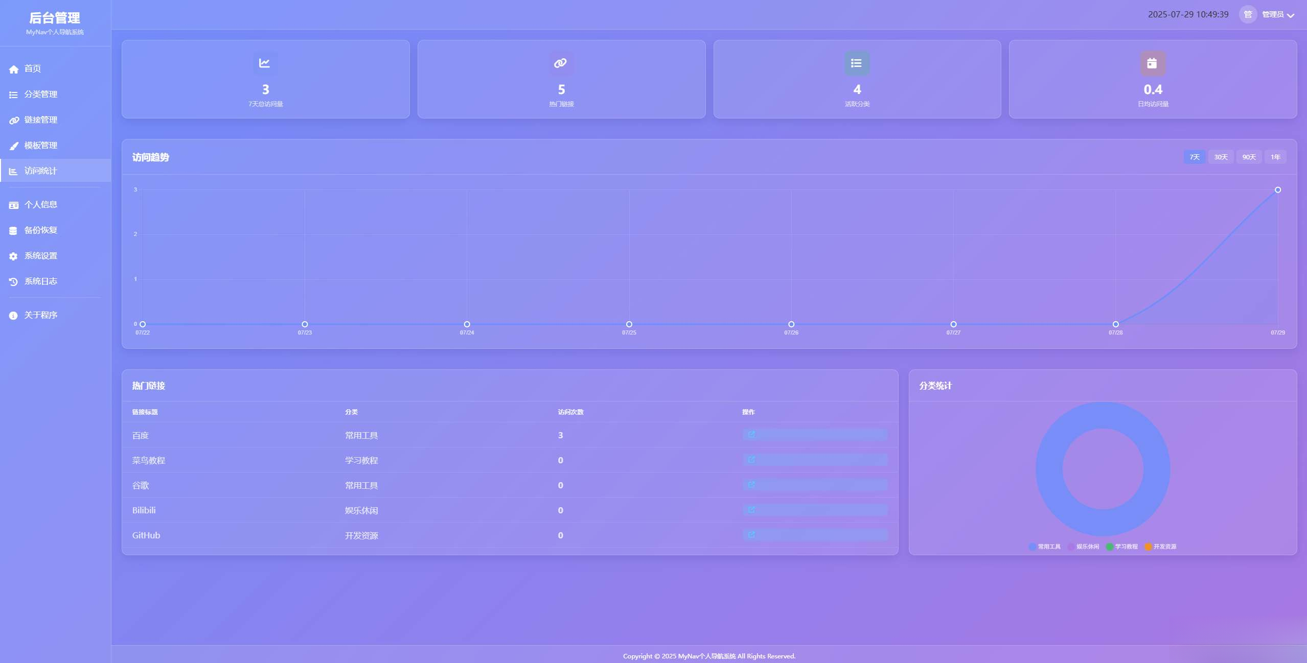 一个现代化的个人网址导航管理系统,支持多模板切换、分类管理、搜索功能等。