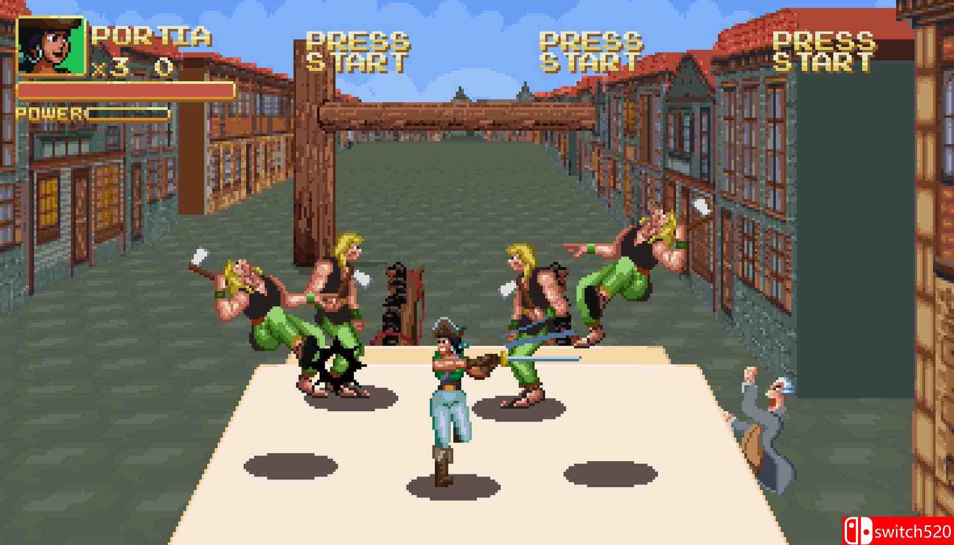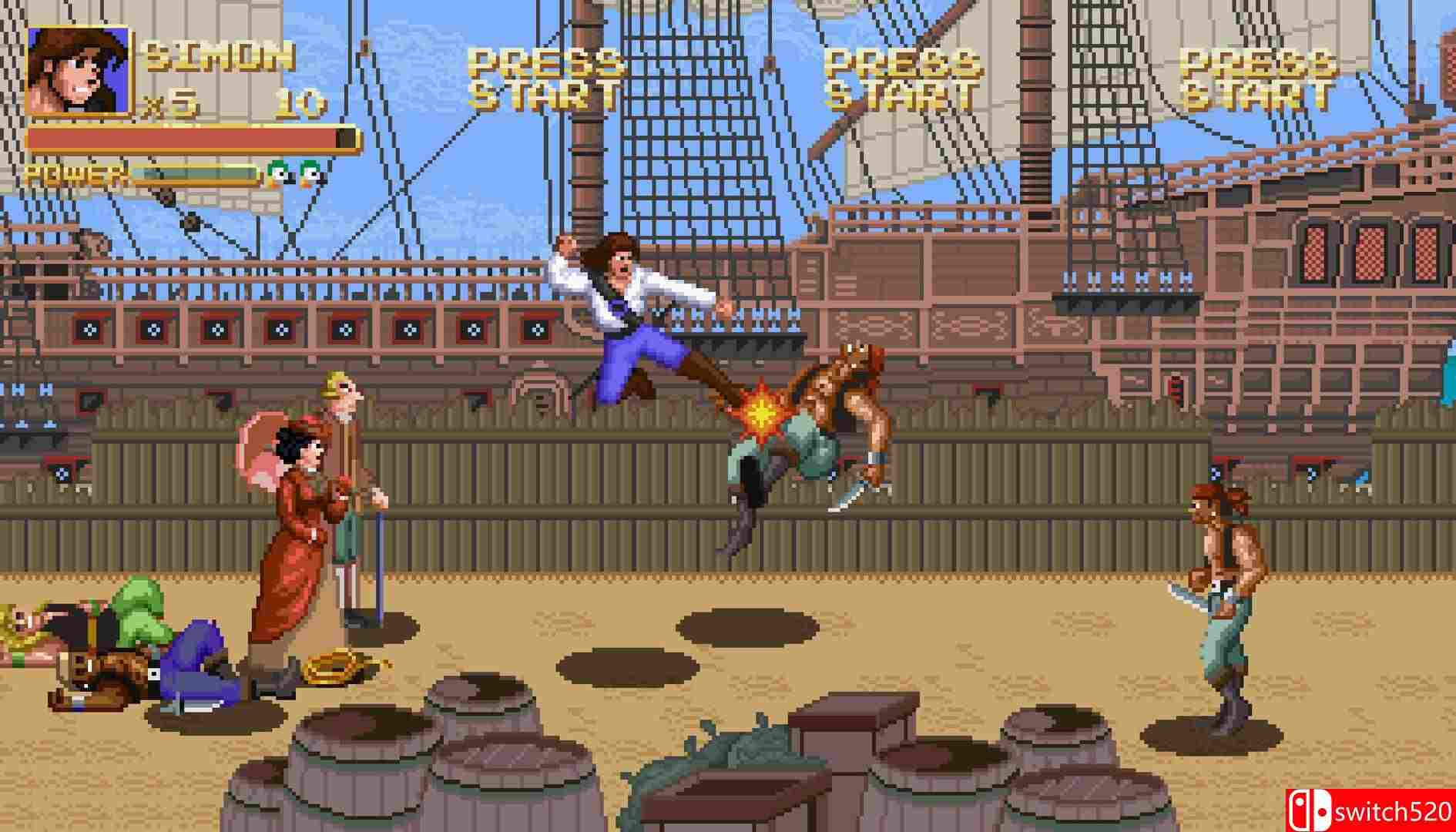 。游戏为 1989 年街机作品 Buccaneers 的官方重制版,加入全新关卡、角色、BGM 和 Z 轴移动机制,保持早 90 年代热血街机动作风格。switch520
