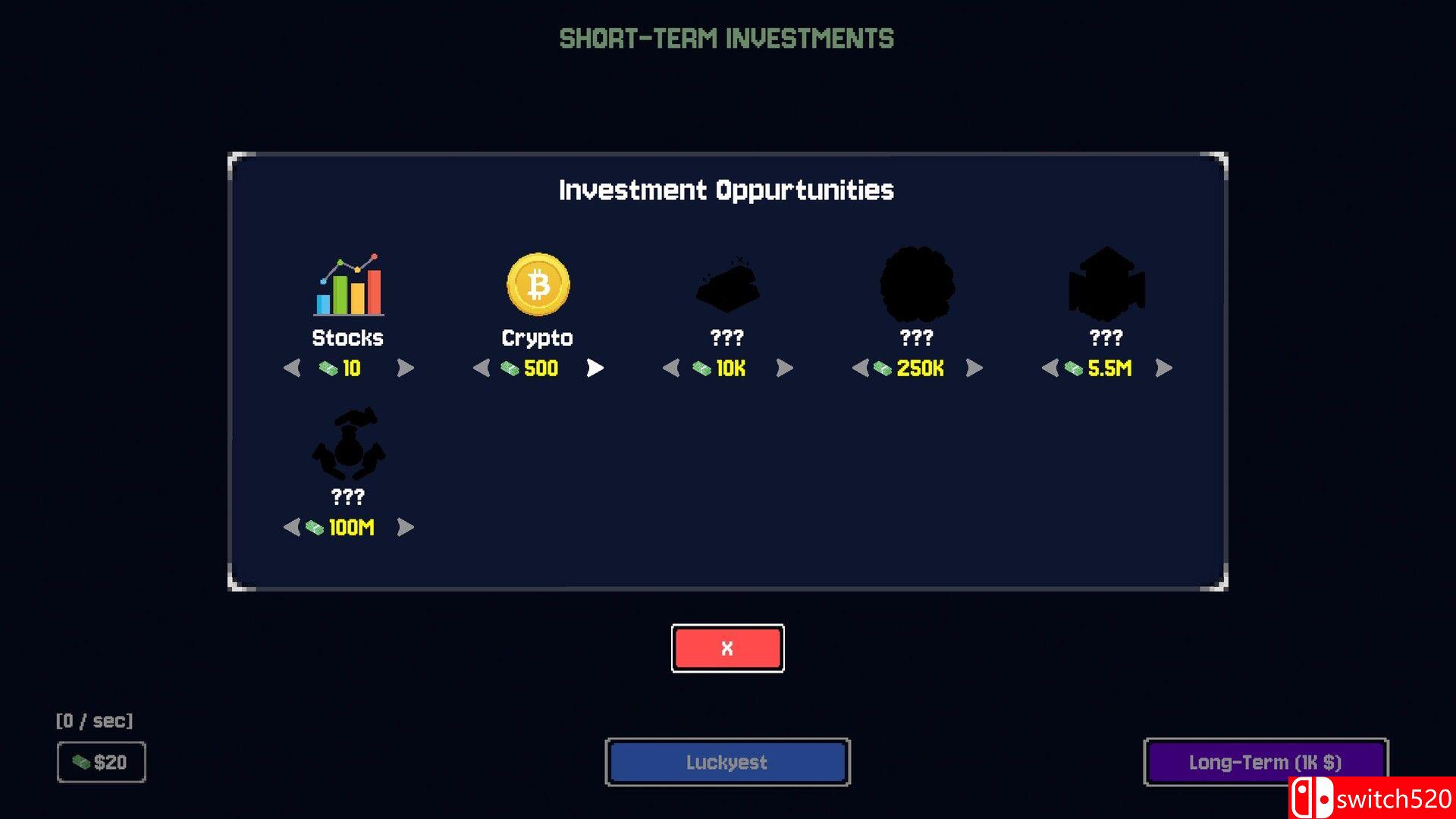 《幸运至极》是一款策略类(SLG)游戏,一款节奏明快的增量式刮开揭晓游戏,核心在于复利式决策——设定下注、揭开结果、选择套现或追求更高倍率,并将收益投入永久升级,逐步加速收入并解锁全新工具。switch520