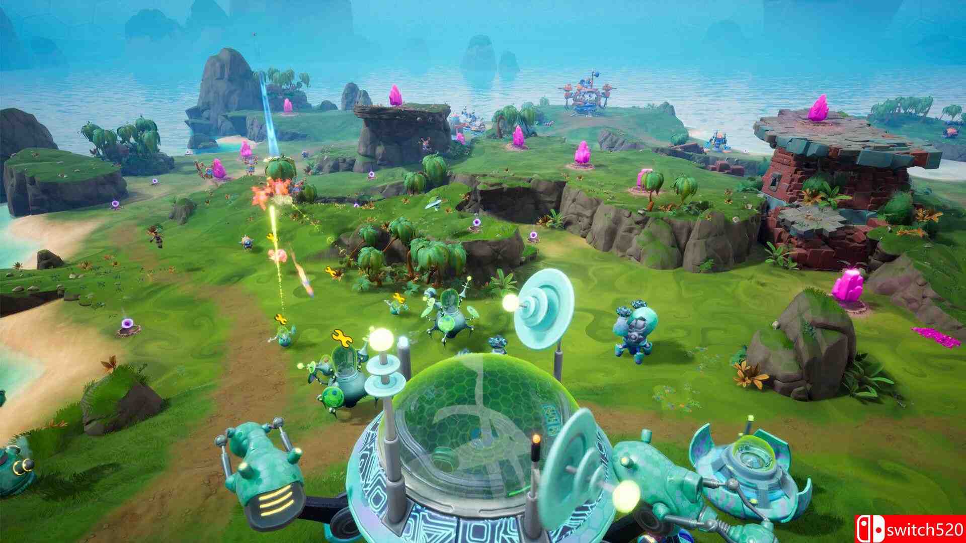《脑怪来袭!脑晶保卫战》是一款动作冒险类(ACT)游戏,这是一款结合了动作与策略元素的游戏,玩家需要收集脑晶,建立基地,并指挥机器人军队击败那些诡异的“瓶装脑怪”外星人!亲自操控英雄角色奇普或爪兹冲锋陷阵,或是在合作模式中同时操控两位角色。注意那些被弹出的外星脑子,你可以把它们踩爆!switch520