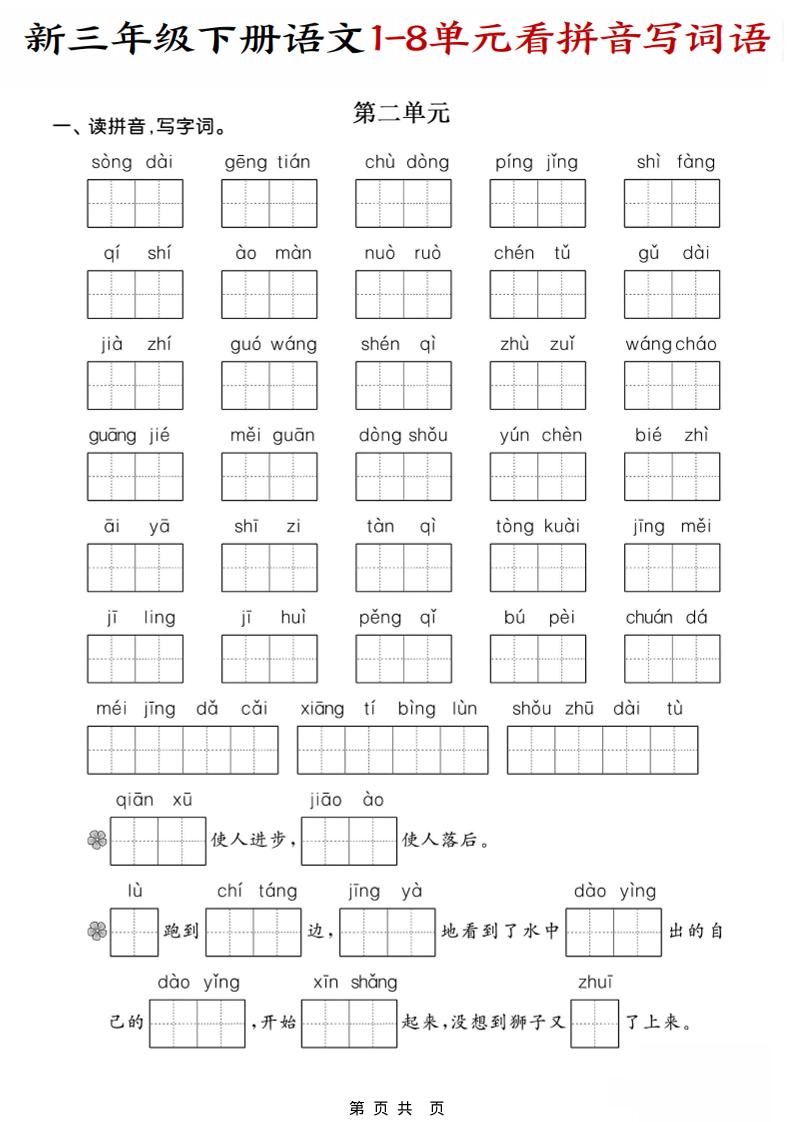 三年级下语文1-8单元看拼音写词语admin2小时前更新关注私信0115三年级下语文1-8单元看拼音写词语此内容为免费阅读,请登录后查看¥0 登录查看免费阅读已售 4 ——预览已结束,还剩8页未读——您已获得此文档下载权限,请点击底部下载完整文档 课程下载: 免费资源,请登录后查看 © 版权声明文章版权归作者所有,未经允许请勿转载。THE END未分类 喜欢就支持一下吧点赞5 分享QQ空间微博QQ好友海报分享复制链接收藏
