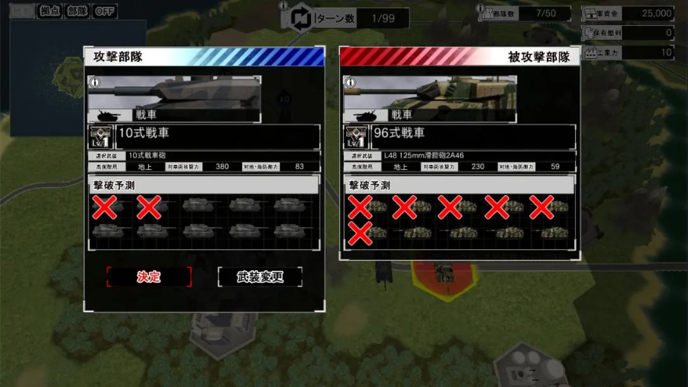 三维资源博弈:引入“军资”、“持有燃料”和“工业力”三大核心资源。你不仅需要在前线指挥坦克与战斗机,更需在后方平衡生产预算与补给线,任何一次冒进都可能导致燃料耗尽而全军覆没。