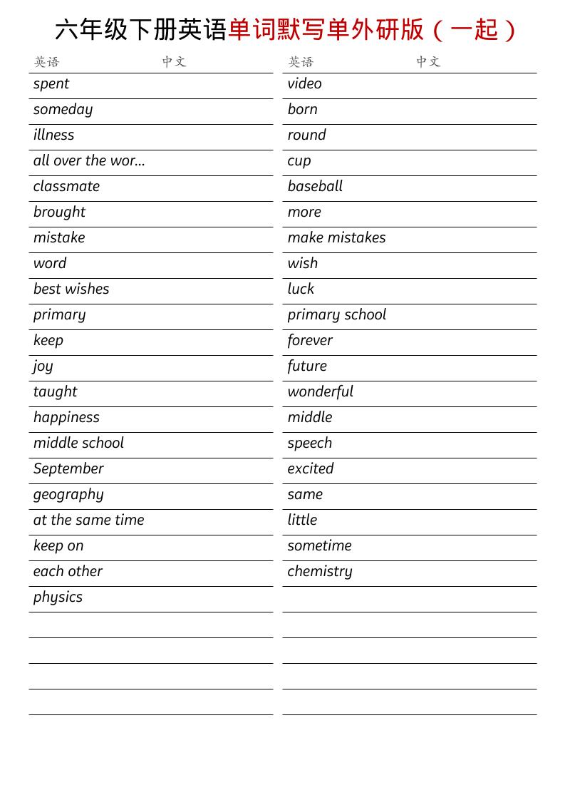 六年级下英语全册单词默写单《外研版(一起)》admin2小时前更新关注私信0115六年级下英语全册单词默写单《外研版(一起)》此内容为免费阅读,请登录后查看¥0 登录查看免费阅读已售 4 ——预览已结束,还剩2页未读——您已获得此文档下载权限,请点击底部下载完整文档 课程下载: 免费资源,请登录后查看 © 版权声明文章版权归作者所有,未经允许请勿转载。THE END未分类 喜欢就支持一下吧点赞5 分享QQ空间微博QQ好友海报分享复制链接收藏