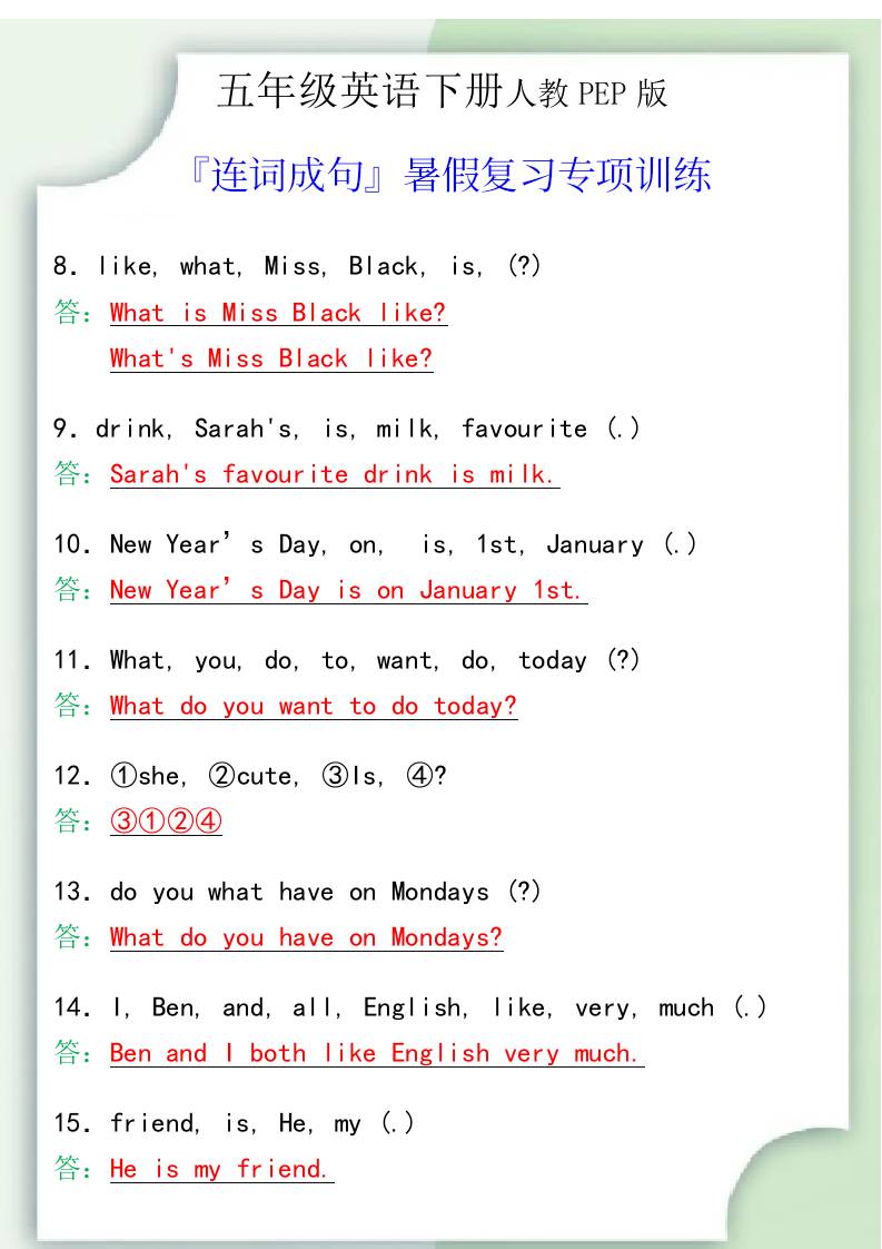 五年级英语下册『连词成句』暑假复习专项训练admin4个月前更新关注私信0104五年级英语下册『连词成句』暑假复习专项训练此内容为免费阅读,请登录后查看¥0 登录查看免费阅读已售 4 ——预览已结束,还剩2页未读——开通会员后可免费下载高清完整文档 课程下载: 免费资源,请登录后查看 © 版权声明文章版权归作者所有,未经允许请勿转载。THE END未分类 喜欢就支持一下吧点赞4 分享QQ空间微博QQ好友海报分享复制链接收藏